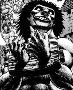 Der König sitzt auf seinem Thron und dekt über die letzten Geschehnisse nach. Ein Jahr lang hatte Charlotte sich in ihrem Zimmer versteckt, nur ein Wort ihres Vaters genügte, sie toben und schreien zu lassen. Doch trotz der Vergiftung war sie zuletzt so tapfer, für Griffith um Gnade zu bitten. Eine Gnade, die der König nicht gewähren will, selbst wenn es ihn die Krone kostet. Seine Gedanken schweifen an einen Tag vor fünf Jahren ab, als man mangels fähiger Männer beschloss, eine neue Truppe aus Sträflingen für dne Krieg zu gründen. Es war Wyald, der sich sogleich als Anführer anbot, weil er behauptete der Stärkste zu sein. Ein anderer Gefangener namens Babo, wesentlich größer und muskulöser als sein Kontrahent, forderte ihn daraufhin zum Kampf heraus. Während man Babo die Fesseln abnahm, lehnte Wyald dankend ab. Er sah die Sache als Spiel an. Wollte dem König eine neue Figur auf der Turmspitze zum Geschenk machen. Niemand wußte so recht, was dann geschah. In einem Moment griff Babo an, im nächsten hing er aufgespießt auf der Turmspitze. So wurde Wyald zum Anführer der Schwarzen Hunde, die den Falken an Kühnheit gleich kamen, jedoch plünderten und vergewaltigten, wo es nur ging. Der König ist überzeugt, dass ein solches Monster gerade recht ist, um Griffith zu erledigen.